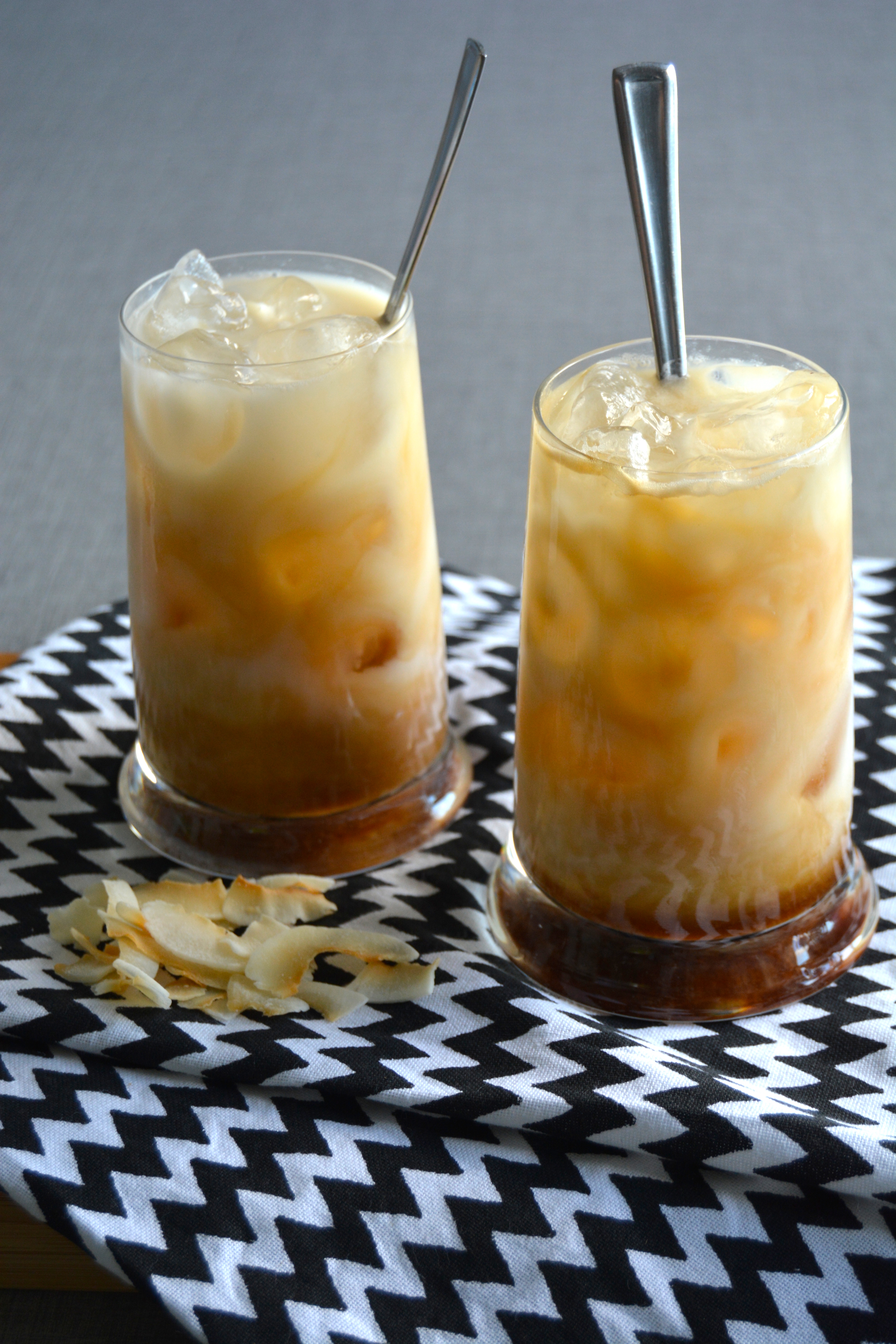 Kaffen er inspirert av vietnamesisk kaffe og med Alpros kokosdrikk inneholder også rismelk som gjør at kaffen ikke er så tung og kraftig som med vanlig kokosmelk. Jeg bruker en min Nespressomaskin til å lage espresso men dersom du ikke har maskinen tilgjengelig kan du også fint instant espressopulver.