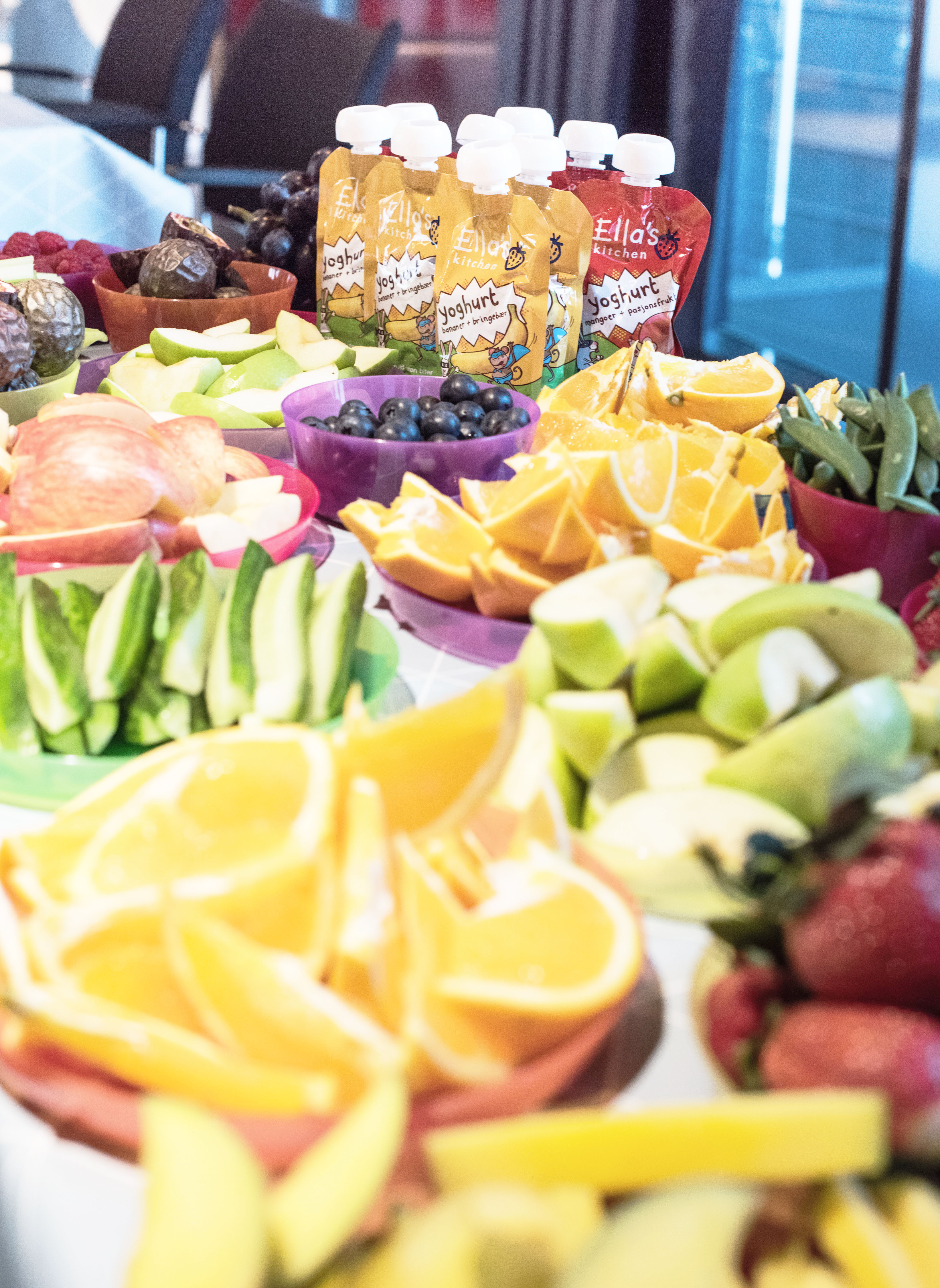 På eventet hadde de herlige Julie fra Julies matblogg som vertinne, som hadde dekket på et lang bord med blant annet frukt, bær og grønnsaker og ga oss tips om hvordan man kan enkelt lage en morsom og næringsrik matboks til barna! Et kjempetips som jeg fikk med meg fra Julie var å bruke Ella´s yoghurter til kjøleskapsgrøt som man kan ta med seg på tur med barna!