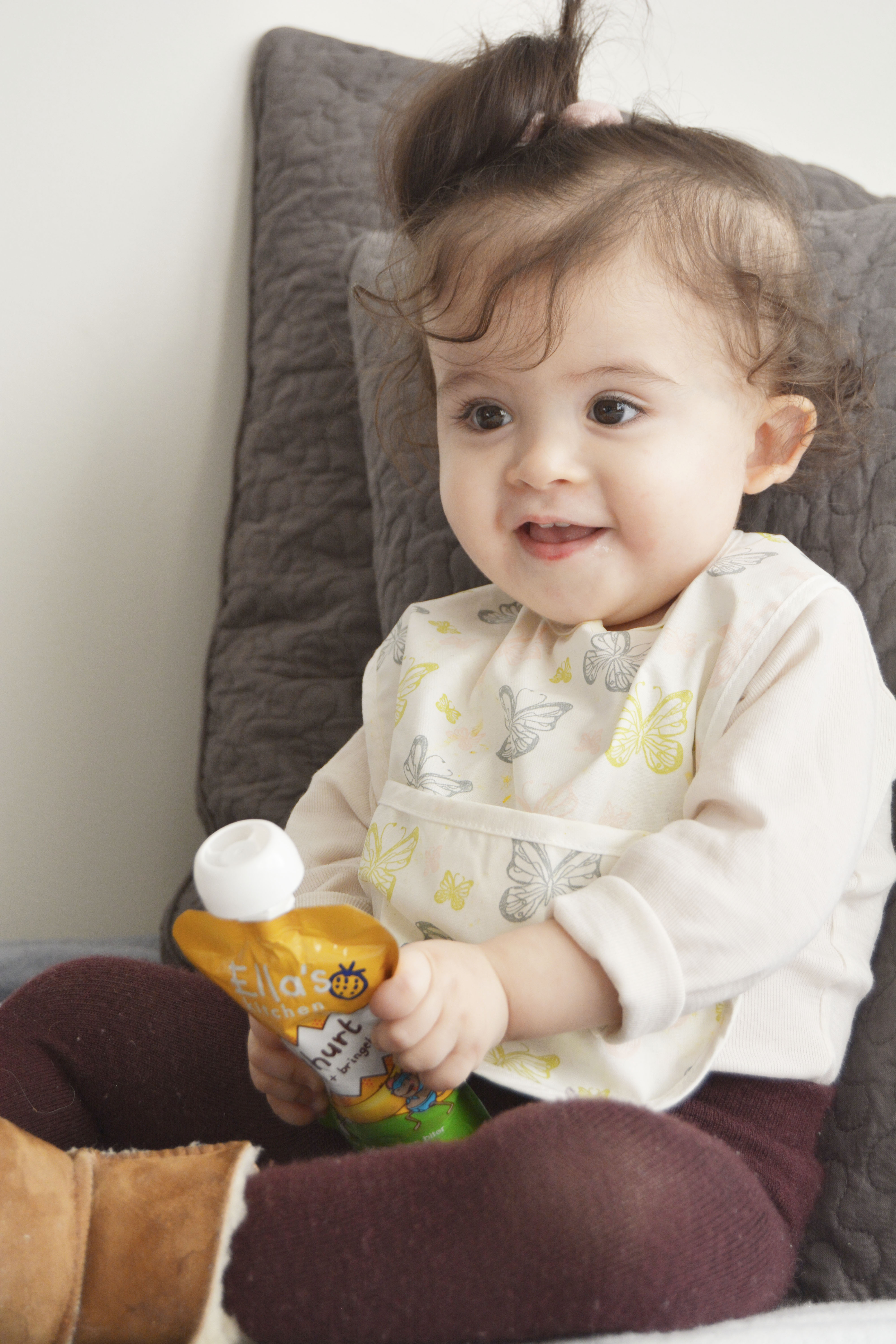 Jeg fikk med meg noen prøvesmaker hjem, men siden Ella´s Kitchen Yoghurt er for barn fra 1 års alder har jeg gitt bort produktene til mine venner, slik at de fikk teste ut på sine små. Her var jeg på et besøk hos min beste venninne og søte Ophelia fikk æren til å teste ut det nye produktet 🙂 Smaken falt først på mango+pasjonsfrukt!