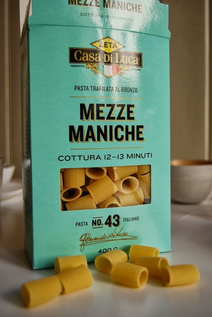 En enkel hverdagsmiddag hvor pasta slår aldri feil på mandag. Vi har alltid ulike type pasta hjemme, for det er en sann redning dersom man skulle være krisesulten og vil ha noe pronto! Med noen få ingredienser fra kjøleskapet, har man plutselig en middag som smaker. Mezze Maniche ble valgt og passer veldig godt til tykke sauser. Den kan ligne på pastatypen Rigatoni, men er kortere.