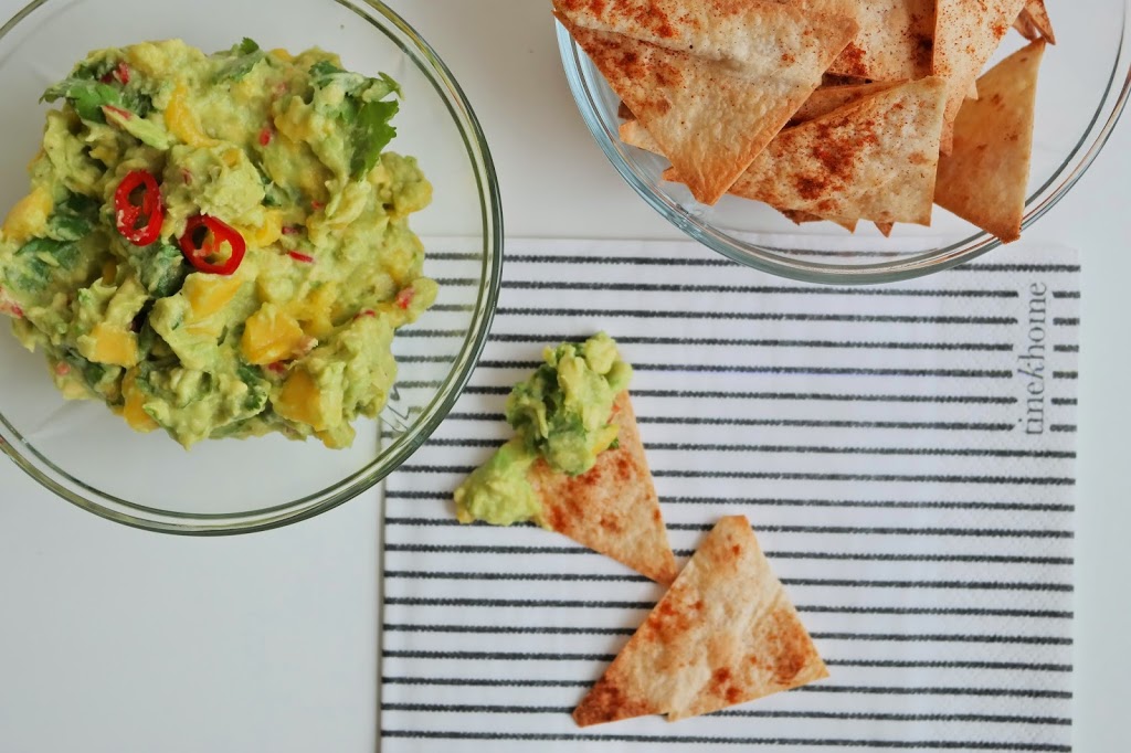 Stek i øverste rille i ca. 3-4 minutter til chipsene begynner så vidt å bli gyldne. Avkjøl på en rist og nyt den alene eller sammen med guacamole!